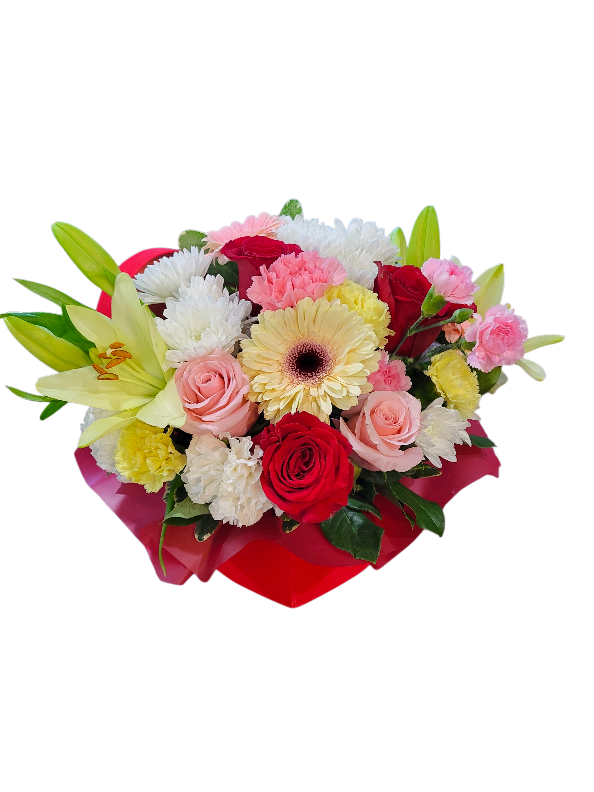Our Junk Food and Snacks Baskets can include chips, candy, gummies, candy bars, nuts, cookies and jerky. Baskets can include wicker, wood, or tin containers. They are wrapped in cellophane and finished with a bow.